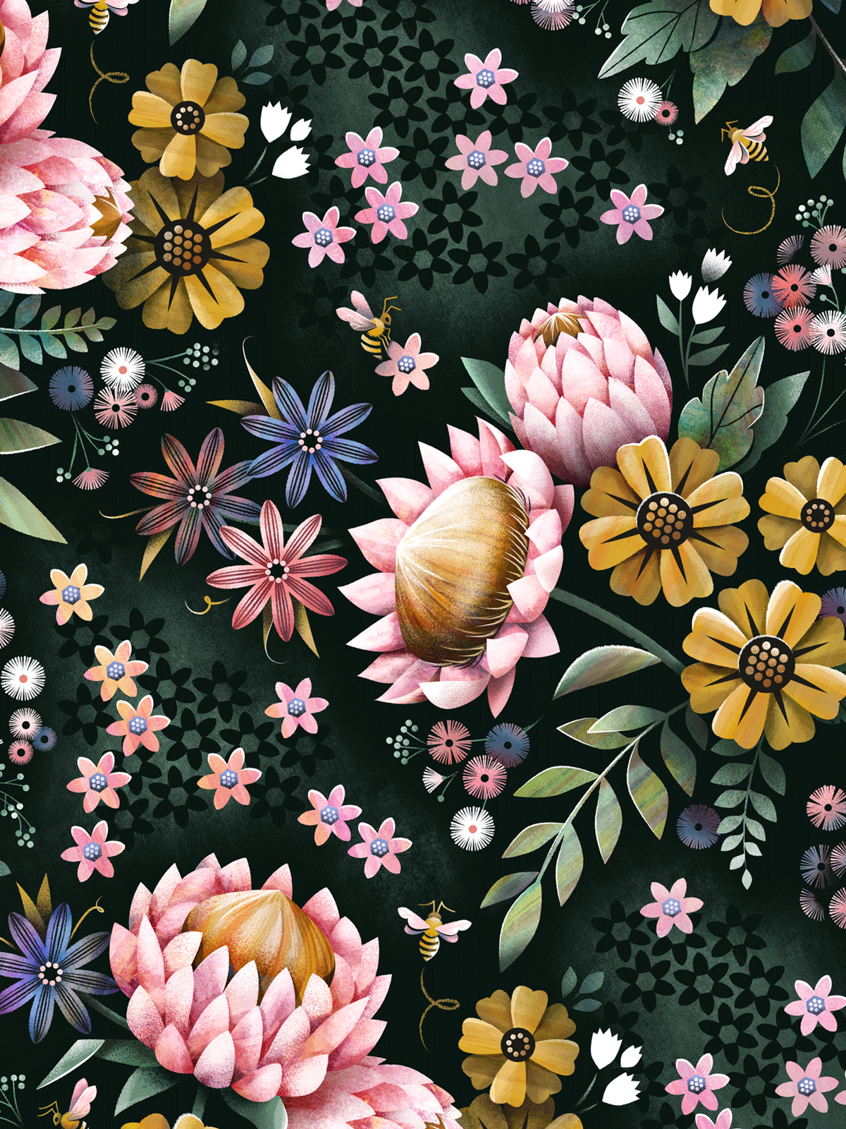Featuring blushing blooms, buzzing bees, sunny golden honey, and soft blue skies, Honey Bloom celebrates the fresh romance of spring. The collection welcomes the warmth after a long winter’s chill, and the fleeting beauty in a blossom-filled breeze.